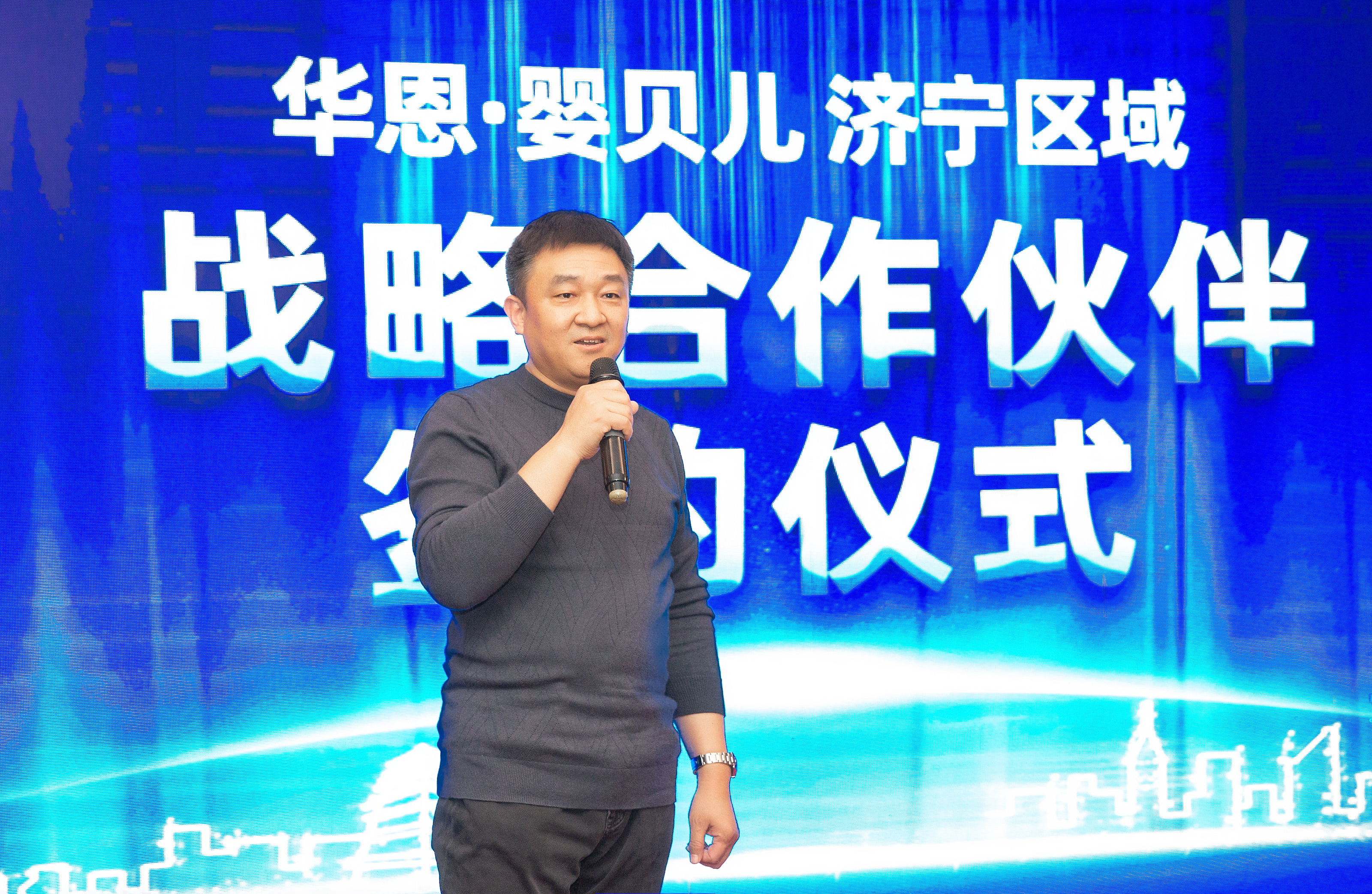 贾俊勇在致辞中首先表示非常感谢与大家共同见证华恩kaiyun.com与济宁区域母婴行业伙伴的战略合作签约。