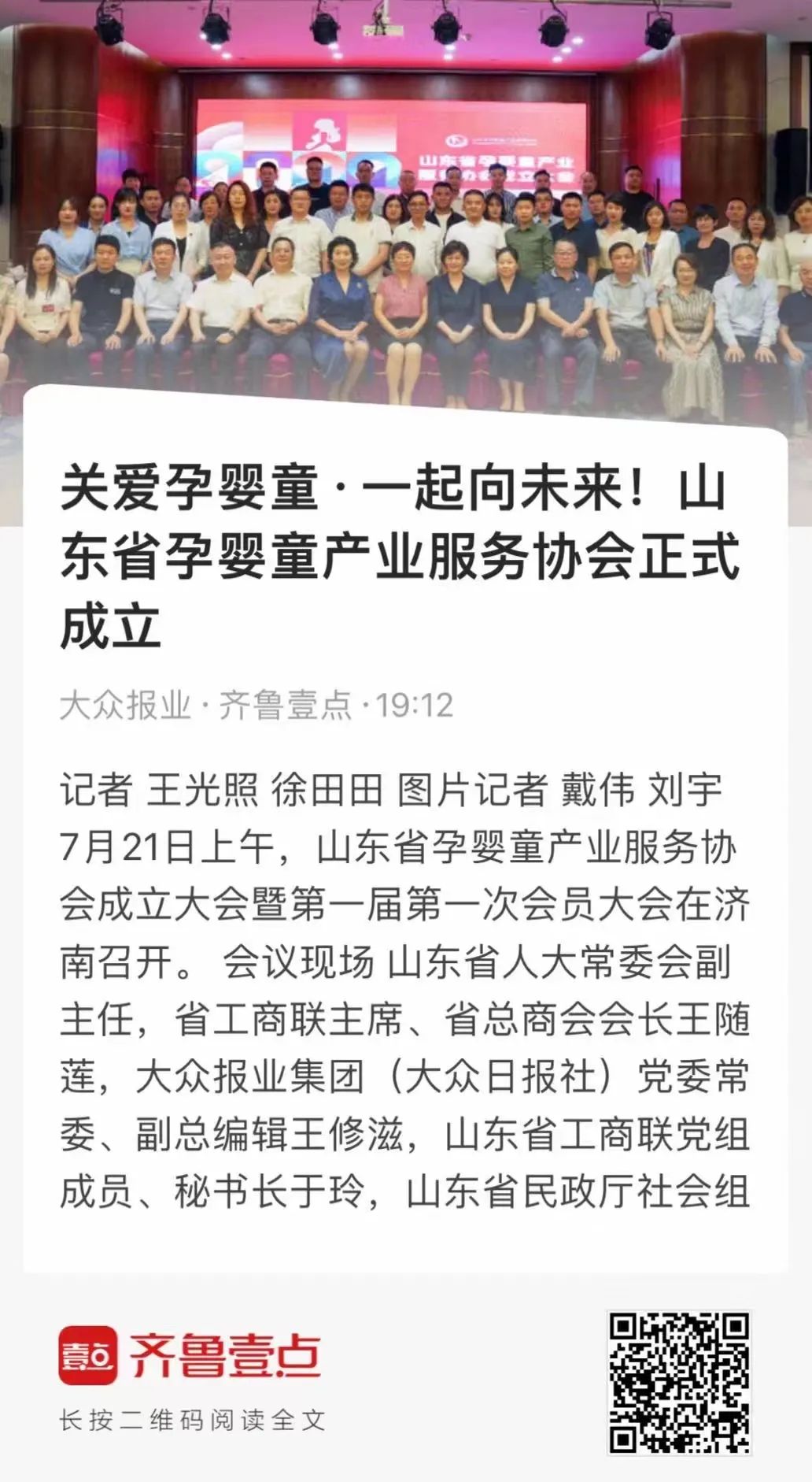山东省孕婴童产业服务协会的成立